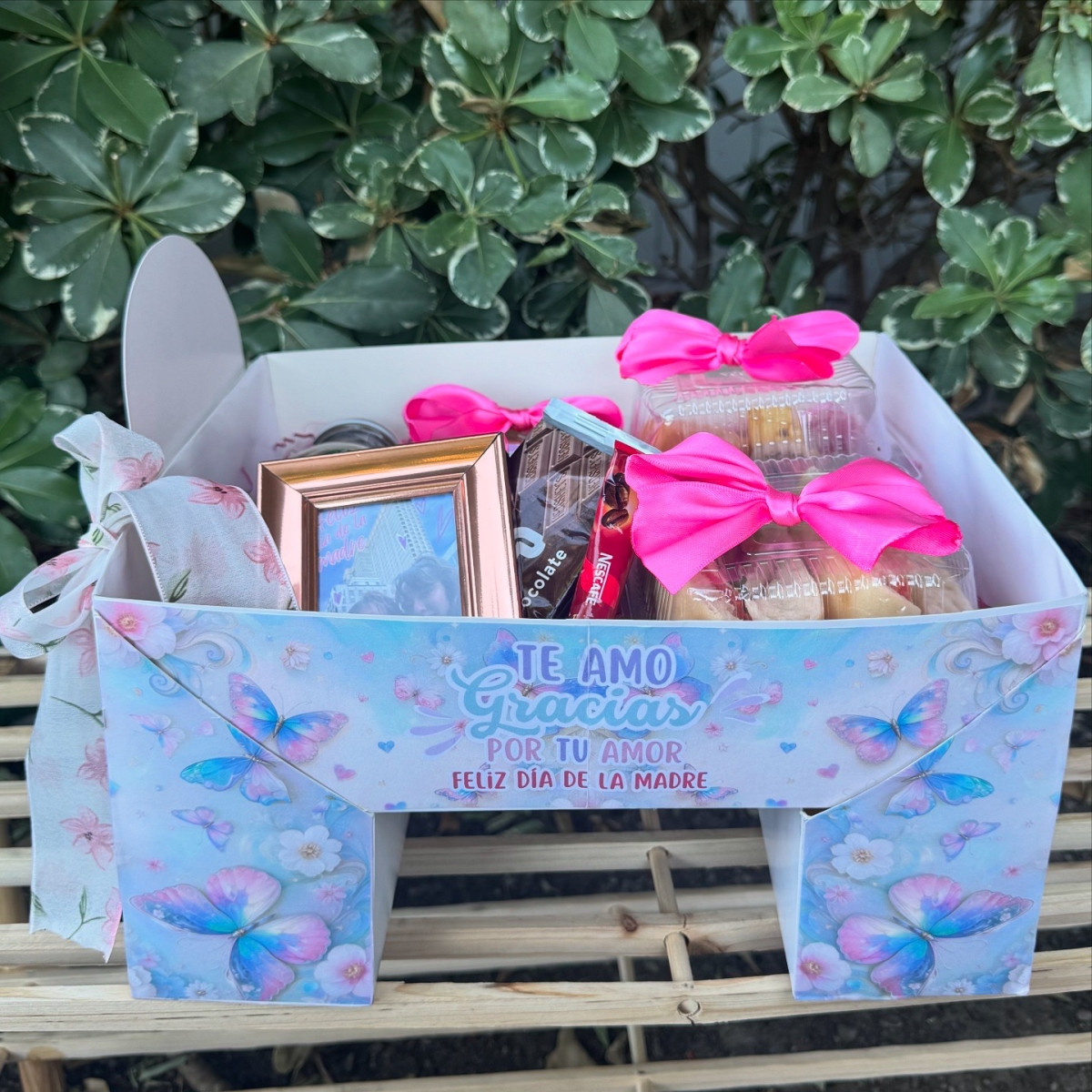 Una bandeja de desayuno pensada para sorprender con elegancia y ternura. Inspirada en un jardín lleno de mariposas y flores, esta cajita incluye detalles delicados que llenan de alegría cualquier mañana especial.